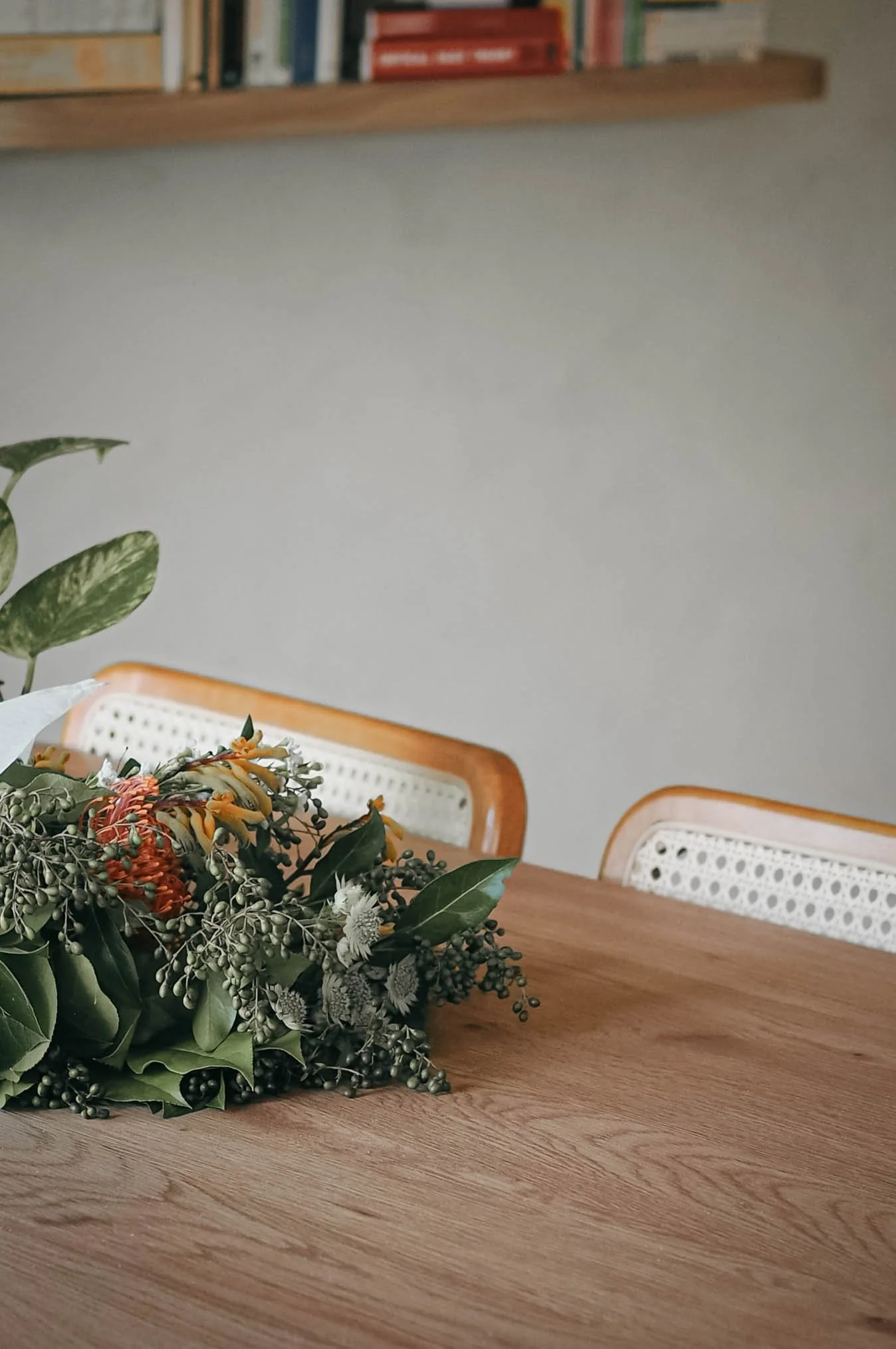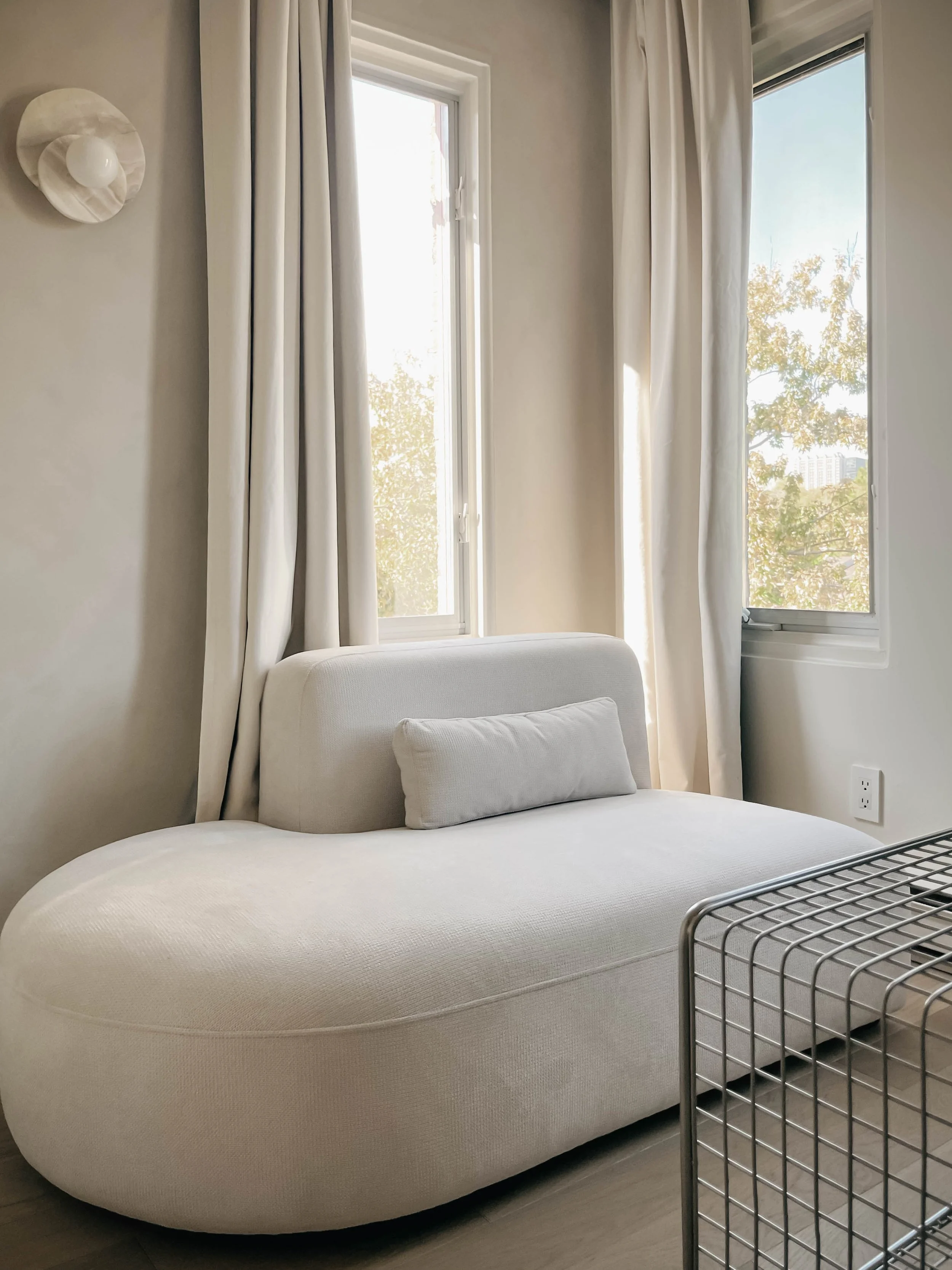 Le concept s’inspire du style Japandi, un équilibre entre le minimalisme japonais et la douceur scandinave. L’utilisation de matériaux naturels tels que la peinture à la chaux, le bois, la porcelaine et le rotin confère à l’ensemble une texture riche et une ambiance douce, empreinte de calme et de simplicité.